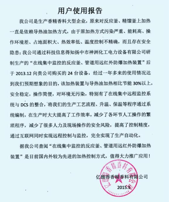 億馥得香精香料有限公司使用報告